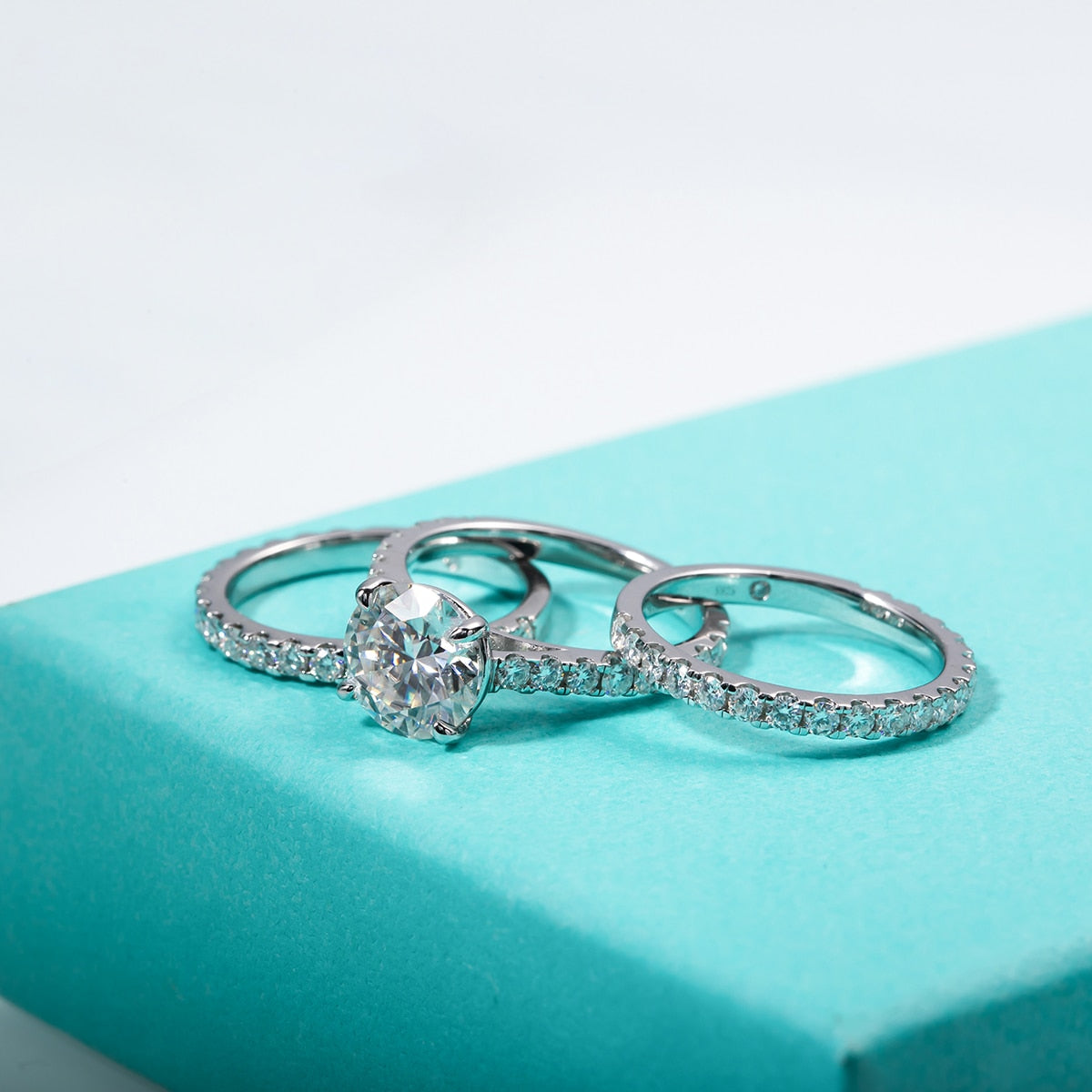 4.75 Carat Total D Color VVS1 Moissanite Triple Plated* 925 Sterling Silver 3 Piece Set Bridal Set