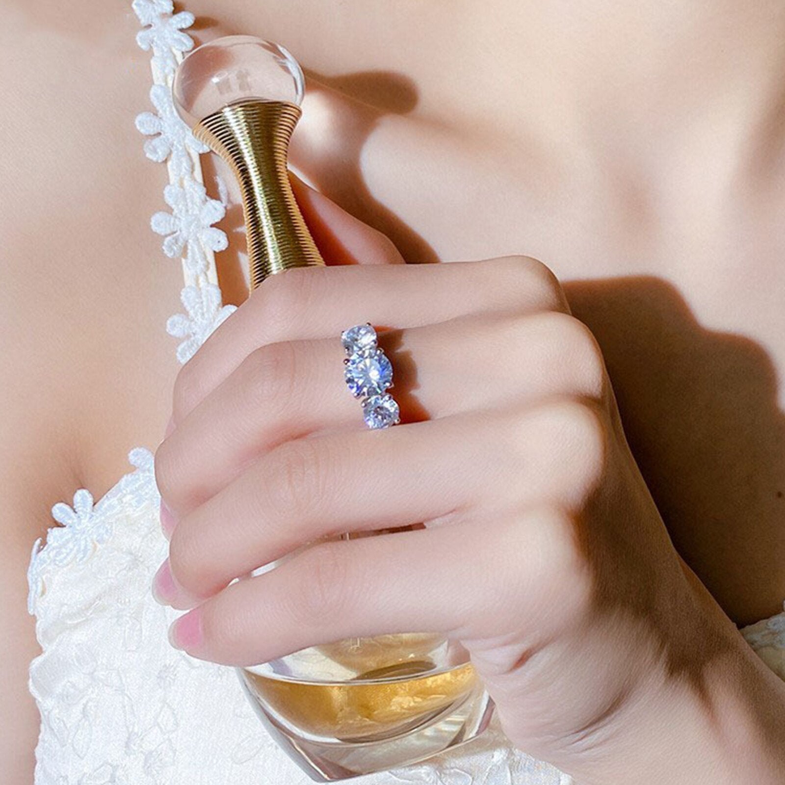 2 Carats Total or 4 Carats Total Moissanite Platinum Plated 925 Sterling 3 Stone Band