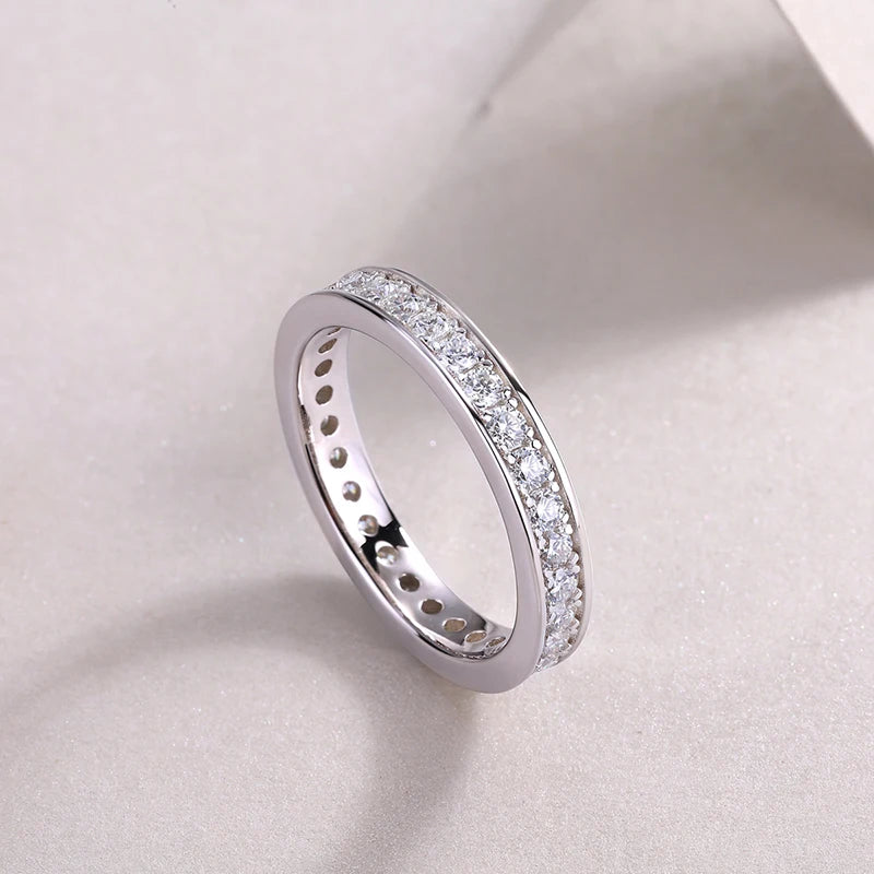 0.9 Carat Total Moissanite Platinum Plated 925 Sterling Silver Eternity Band