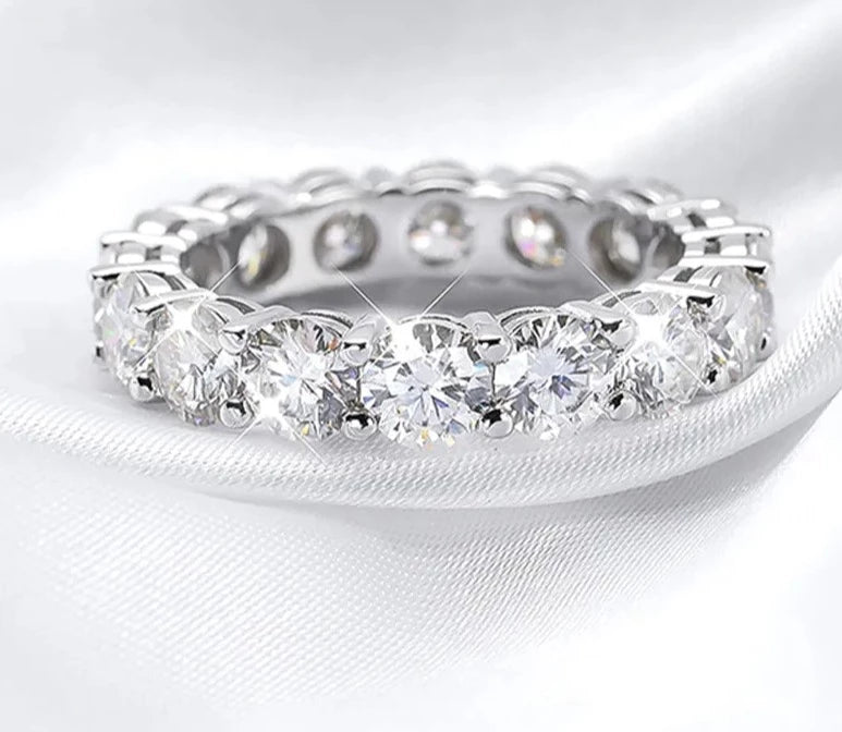 2.2 Carat Total or 8 Carat Total Moissanite Rhodium Plated 925 Sterling Eternity Band